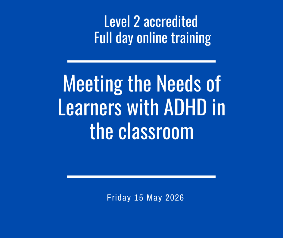 ** Accredited ** Meeting the needs of learners with ADHD Level 2: Full day via Zoom Friday 15 May 2026